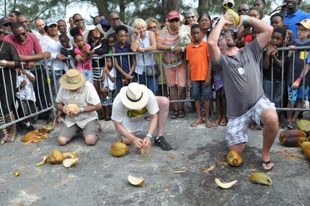Coconut Barking Competition at the 18th Annual Pelican Point Coconut Festival held March 28 in Pelican Point, Grand Bahama.  (BIS Photo)