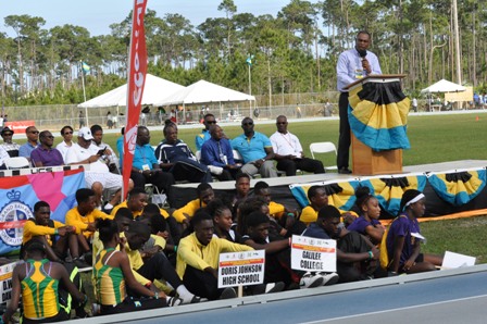 Minister for Grand Bahama, the Hon. Dr. Michael Darville officially welcomed the young athletes to Grand Bahama during the official opening ceremony at the Grand Bahama Sports Complex, April 11, thanking the coaches and teachers for bringing some of the best young athletes from across the country to the island.